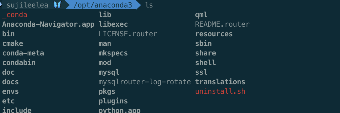 cd ~/opt/anaconda3 명령어를 통해 anaconda3 폴더로 이동해보자.