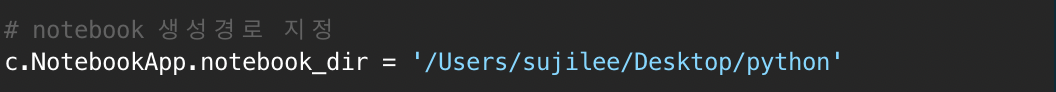 jupyter_notebook_config.py 파일을 생성한 뒤 생성 경로를 지정하는 코드를 추가한다.